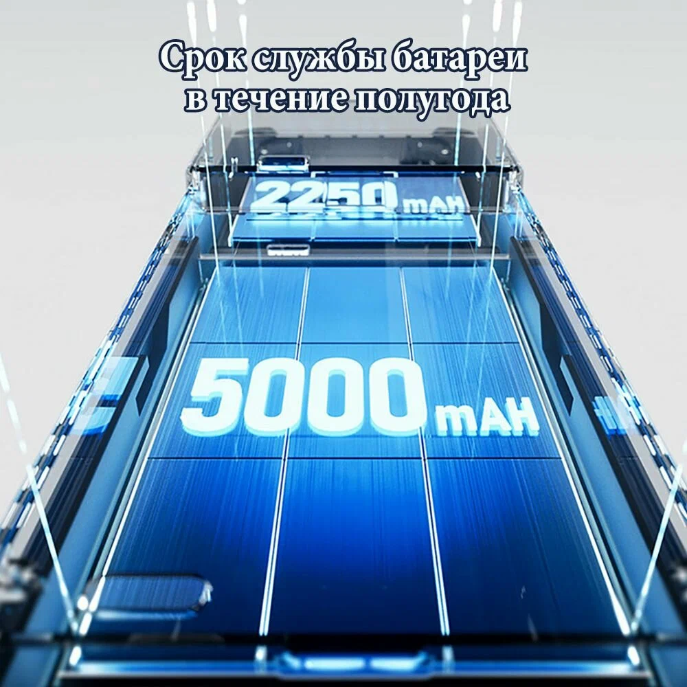 Аккумулятор: один литиевый аккумулятор ёмкостью 5000 мАч, один литиевый аккумулятор ёмкостью 2250 мАч
